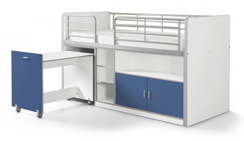 Vipack BONNY Lit mi-hauteur avec bureau et rangement 90x 200 Bleu