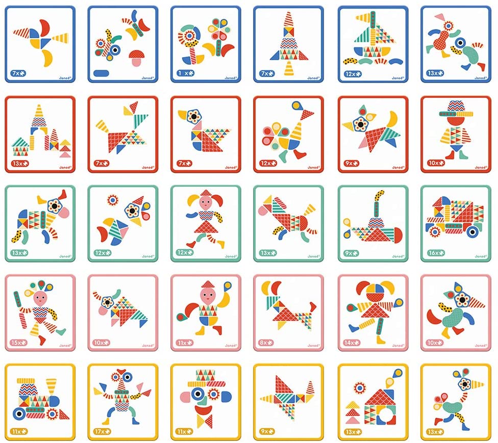 Choisissez parmi les 30 cartes modèles et réalisez la constructions magnétique à l'aide des 43 magnets de couleurs et de formes différentes.