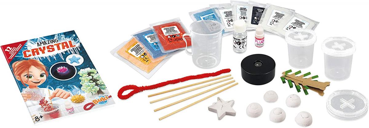 Cultive 12 étonnants et magnifiques cristaux : découvre l'arbre à cristaux instantanés, réalise un bijou cristallisé ou fais pousser un méga cristal. Place tes cristaux sur la base lumineuse et regarde la lumière transpercer le cristal ! Les activités sont réalisées à l'aide d'un four micro-ondes pour plus de rapidité et de sécurité. Notice illustrée en couleurs Nécessite 3 piles LR03 non incluses Dès 8 ans