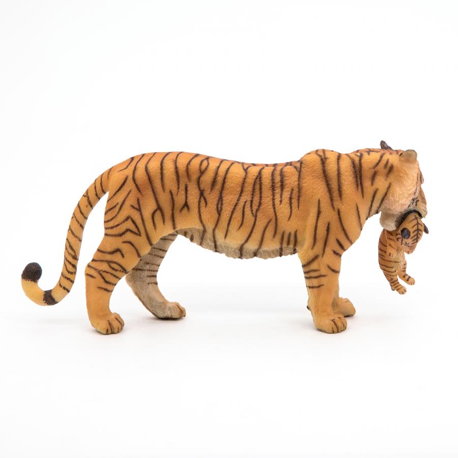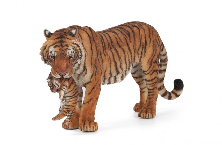 Maman tigresse est du genre à éviter le danger et déplace fréquemment ses petits en les portants dans sa gueule. Les tigres possèdent bien souvent plusieurs tanières et se déplace de l'une à l'autre selon les besoins. Pour donner naissance, la tigresse s'isole loin des regards. Les bébés naissent aveugles et pèse près d'un kilo en moyenne. Ils sont très vulnérables mais peuvent compter sur la protection de leur mère qui plus tard leurs apprendra à chasser.