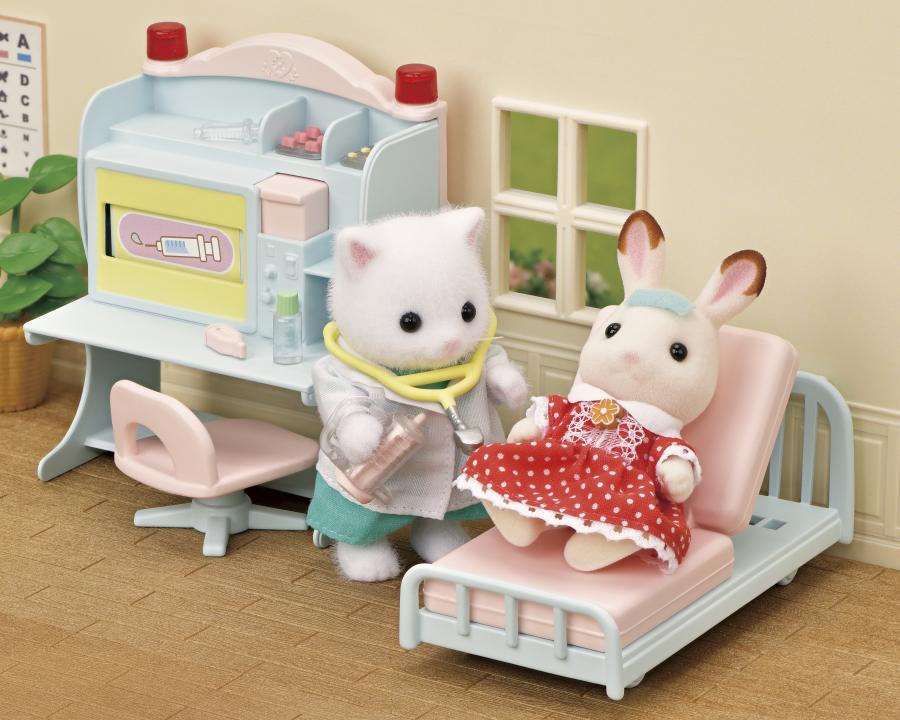 Ce set est idéal pour transformer votre cosy cottage en cabinet médical ou votre monospace rose en ambulance. Il contient également la figurine de la maman Chat Persan en blouse de docteur. Imite le docteur grâce aux différents accessoires : une chaise roulante, un lit, des béquilles ou encore des médicaments.