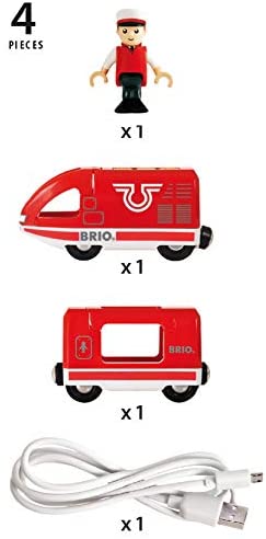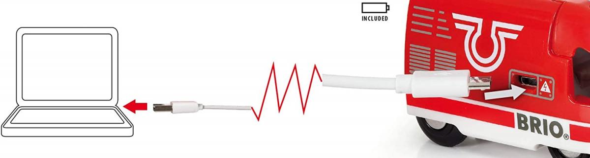 Ce train se recharge avec le câble usb fourni. Il avance et recule grâce aux boutons jaunes placés au dessus de la locomotive. Une fois le wagon de voyageur connecté, le conducteur peut s'installer au poste de conduite et faire le tour du circuit.
