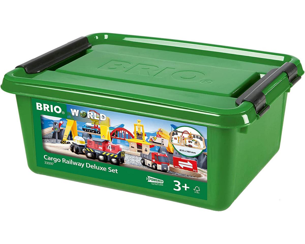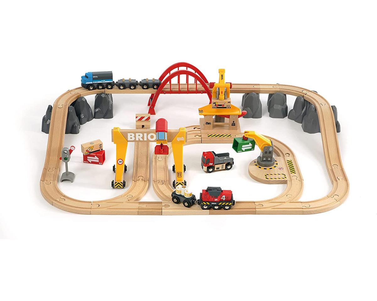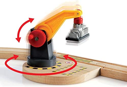 Avec ce circuit de 54 pièces l'univers du transport de marchandises est complet. En manipulant les 3 grues, vous découvrirez un univers de jeu riche en fonctions mécaniques. Transportez la marchandise derrière la locomotive de fret à pile dont les phares éclaireront la voie. Ou bien prenez la route au volant du camion et livrez la marchandise. Un coffret incontournable pour les amoureux de trains !