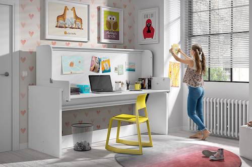 Si vous avez une chambre d'adolescent assez étroite, ce lit est la solution. Pour la nuit le Lit est à disposition et le jour, votre enfant peut basculer le lit pour le transformer en bureau.