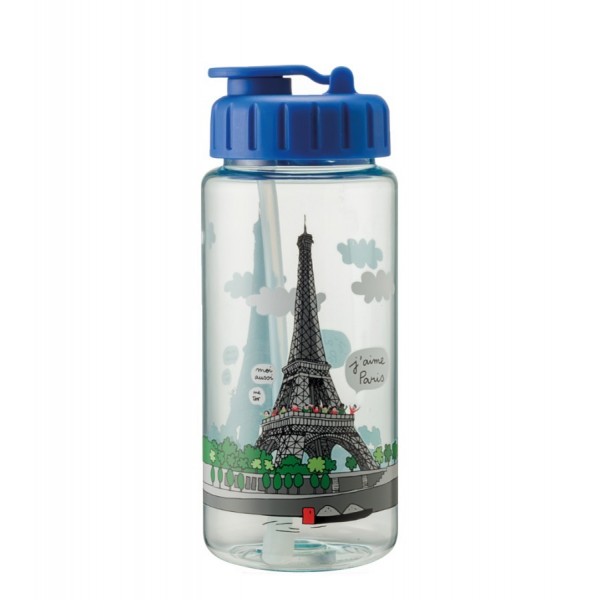 Cette gourde transparente est résistante et grâce à sa taille, elle est adaptée aux petites mains. Le couvercle à dévisser permet de remplir la gourde rapidement et facilement. Elle est aussi est dotée d'une paille intégrée qui se déplie et se replie pour le transport. L'embout pour boire est ainsi toujours bien propre. Pratique !