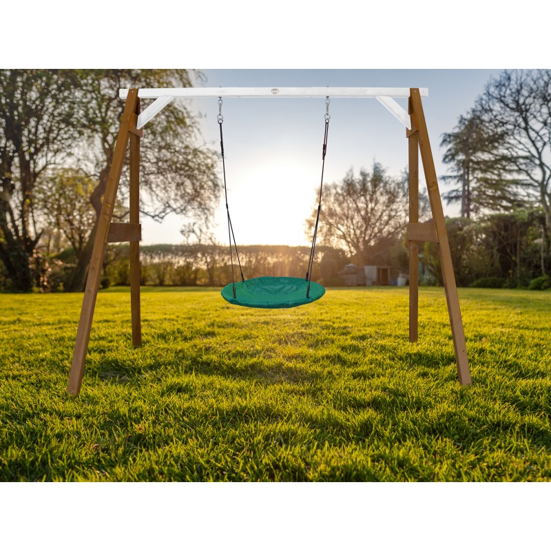 AXI Portique en Bois Marron Blanc avec Balancoire siege Nid Rond