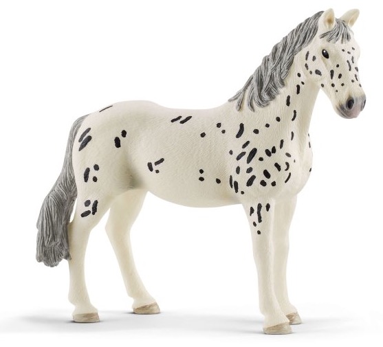 La gracieuse Jument Knabstrupper du Horse Club Schleich® se distingue par sa robe tachetée. C'est une caractéristique typique de cette race de cheval.