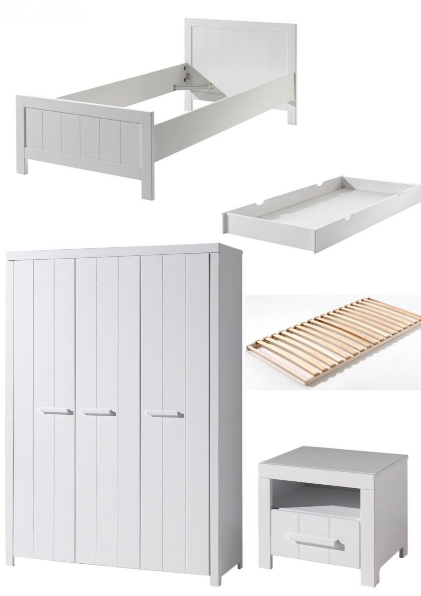 Vipack ERIK Lit simple + sommier + chevet + armoire 3 portes + Lit gigogne