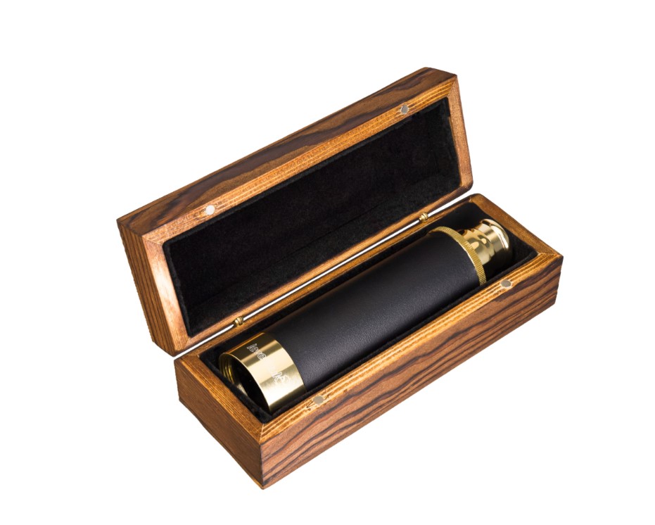 La longue-vue Levenhuk Spyglass SG2 se compose de trois tuyaux en laiton rétractables. Le tuyau principal est recouvert de cuir. L'optique de la longue-vue est en verre BK-7 et l'objectif est puissant et capte la lumière. Vous obtiendrez toujours des images nettes, lumineuses et contrastées avec cette lunette.