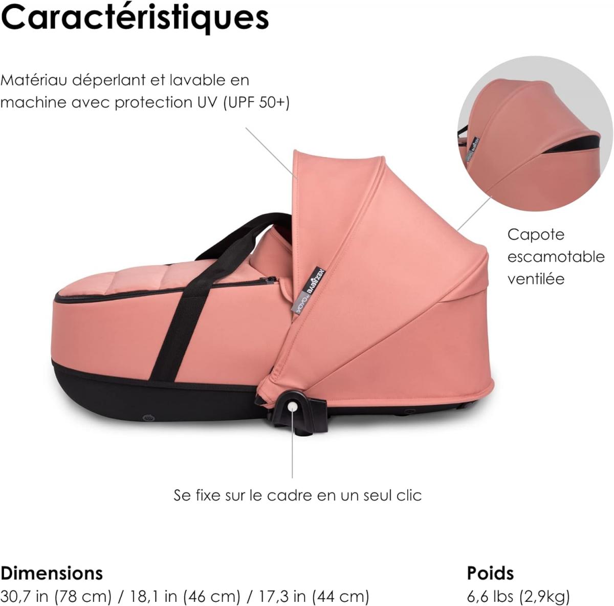Dimensions déplié : 78 cm (largeur) x 44 cm (hauteur) x 46 cm (profondeur) pour un maximum de confort et d'espace pour bébé