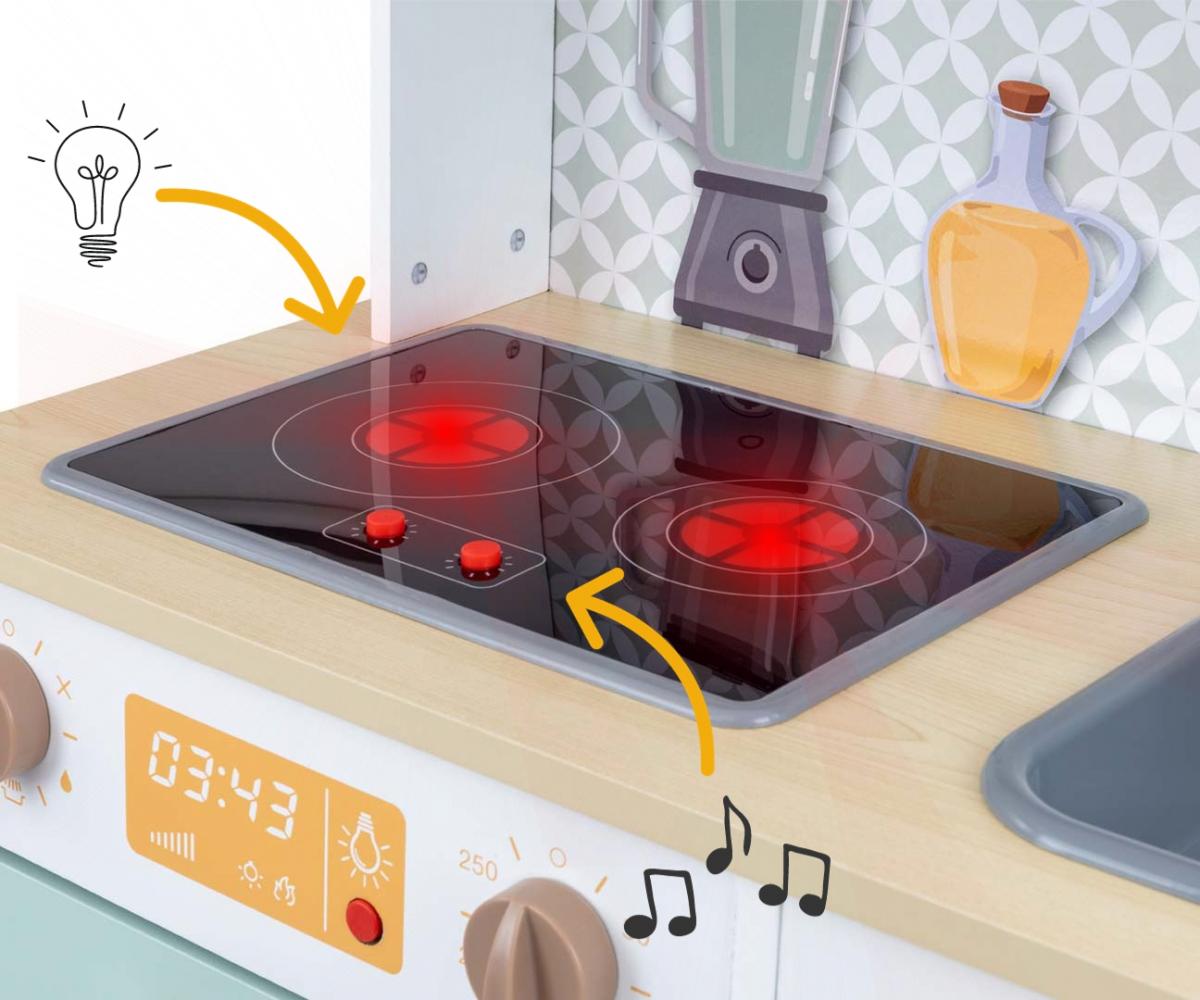 Cuisinez comme les grands avec cette cuisine en bois couleur menthe !