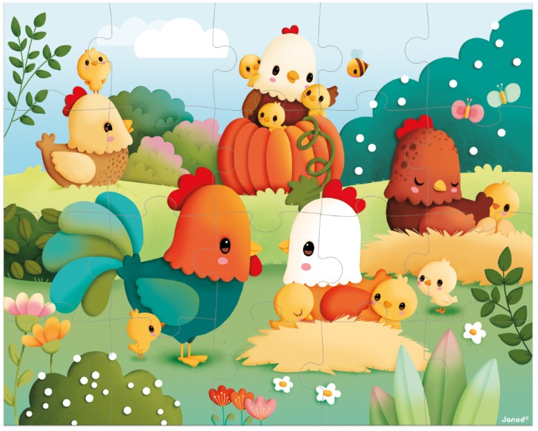 Invitez la campagne dans la chambre de votre enfant avec notre charmant Puzzle 'Bienvenue à la Basse-Cour' de 20 pièces ! Ce puzzle captivant est spécialement conçu pour les jeunes explorateurs à partir de 3 ans, offrant une expérience ludique et éducative autour des animaux de la ferme. Il développe la motricité fine, la reconnaissance des formes et des couleurs, et la patience, tout en s'amusant. Une fois assemblé, le puzzle révèle une magnifique scène animée de la basse-cour, pleine de vie et de couleurs. On y découvre des vaches, des poules, des cochons, des canards et d'autres animaux de la ferme, tous représentés avec des illustrations tendres et joyeuses qui stimulent l'imaginationRéférence : J03320