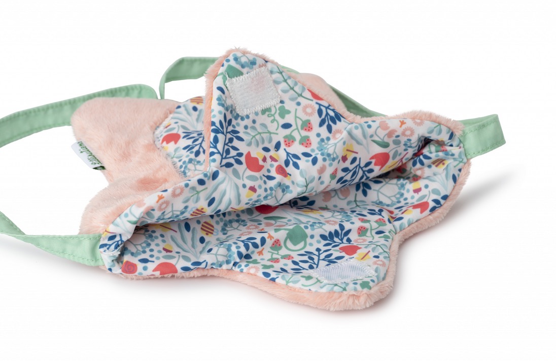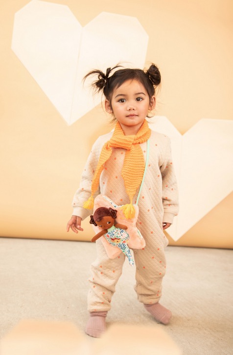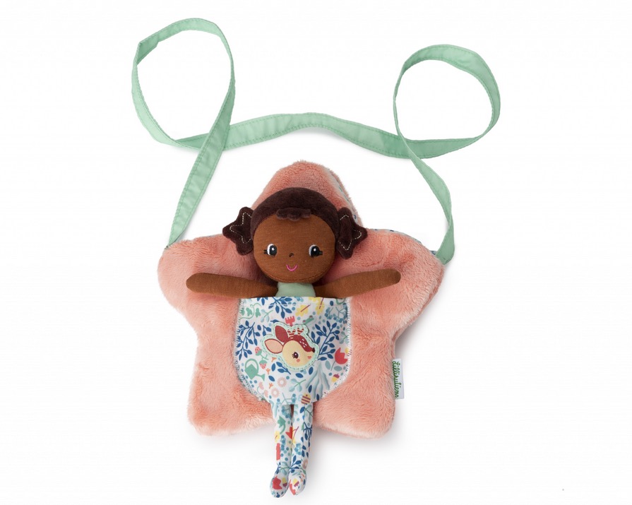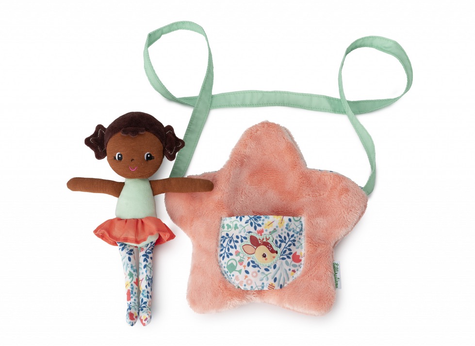 Un joli sac bandouillère où l'enfant pourra porter sa poupée et aussi ces petites affaires .