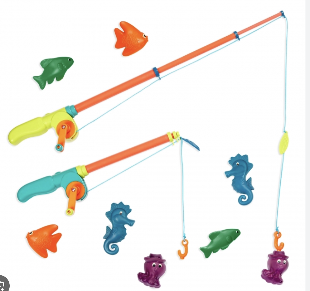 2 vraies cannes à pêche avec moulinet pour remonter les 8 animaux marins.