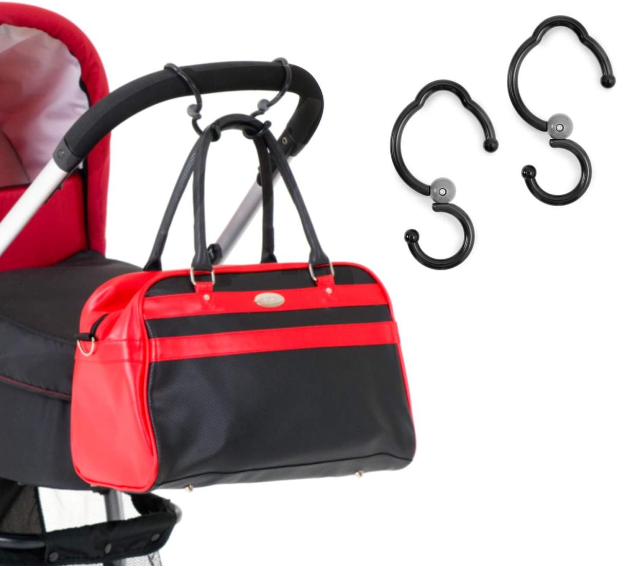 Ces crochets universels pour poussette sont faciles à utiliser et pratiques pour les sacs de course. sac à langer. sac à main ou autre. Le crochet pivote à 360° et convient à presque toute les diamètres de tube. Naturellement. ces crochet sont parfait pour y accrocher le sac à main de maman pour eviter de la mettre par terre. par exemple dans un café. Poids maximum 4 kg par crochet et 2 crochets par paquet.