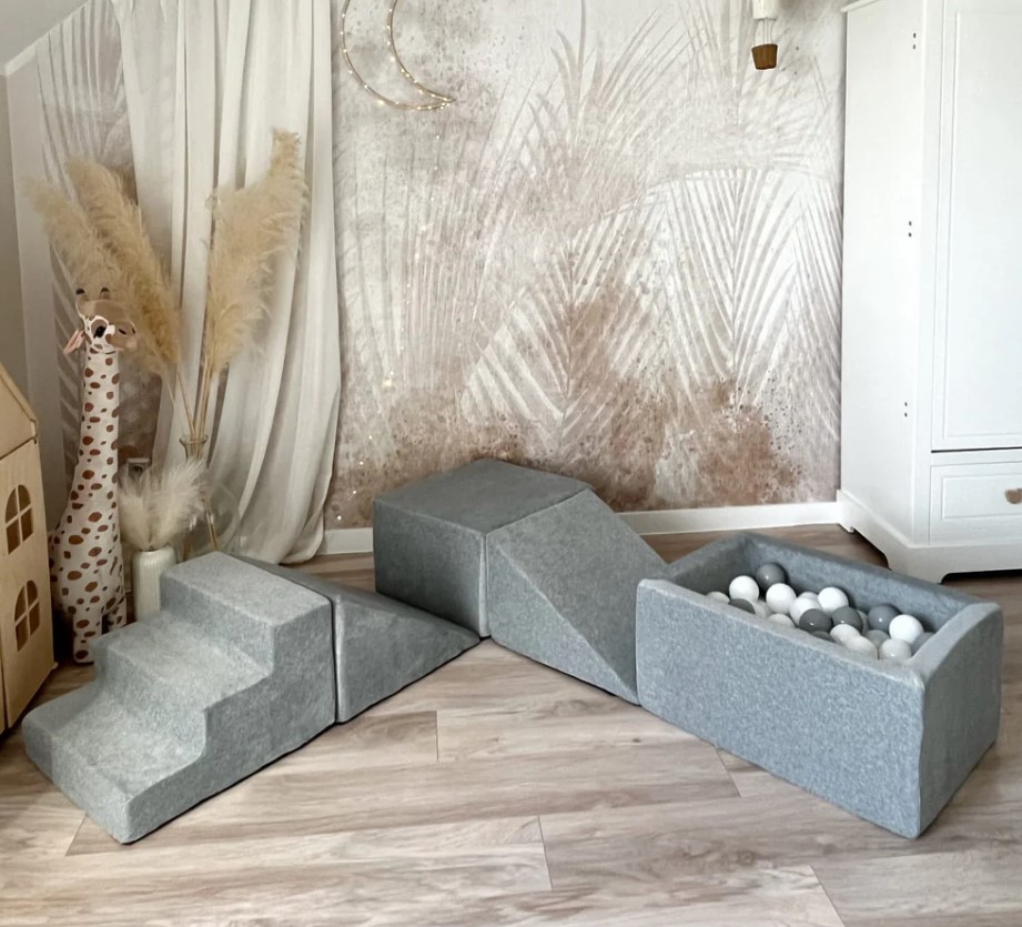 Jeu en mousse 5 éléments avec mini piscine à balles velours gris