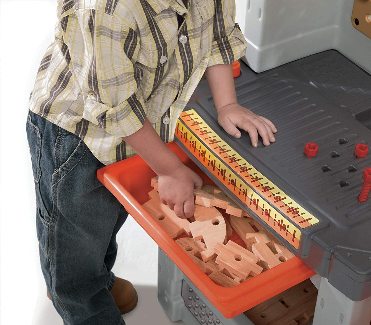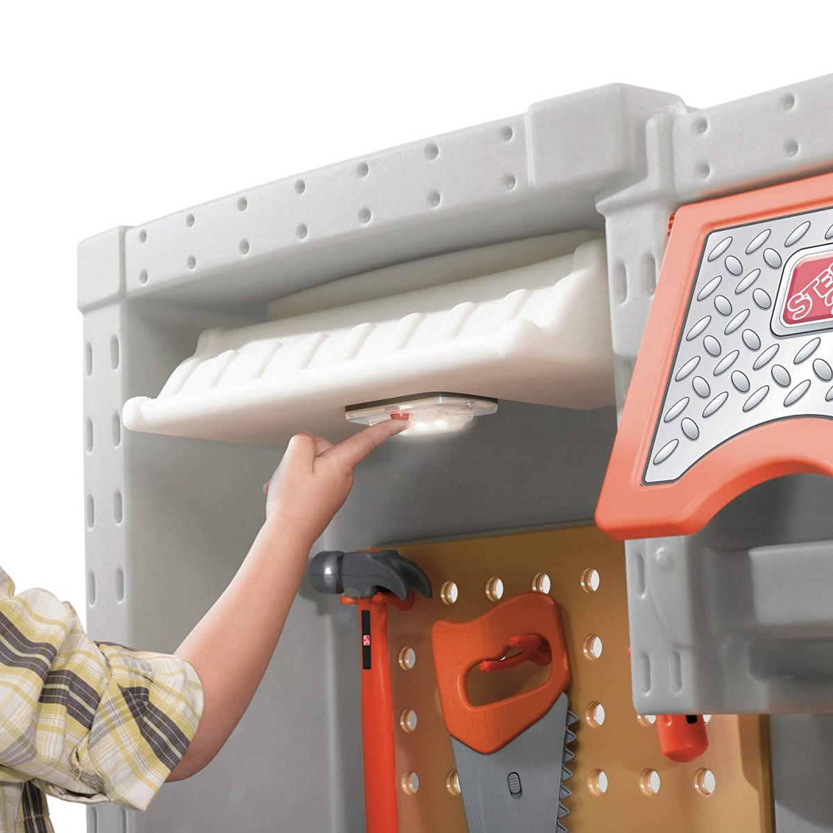Pour un plaisir de jeu illimité, de nombreuses fonctions électroniques (perceuse, éclairage...), un grand plateau de jeu percé pour y insérer des vis, des rangements pour les boulons et les vis. 17 pièces imitant le bois, en Durafoam très résistant, s'assemblent selon l'imagination des enfants. Instructions pour 4 montages incluses. Egalement un éclairage qui fonctionne, la perceuse à piles produit des bruits électroniques et s'y adaptent plusieurs “mèches”, étau à vis, tiroirs. Plus de 50 accessoires inclus, dont des écrous, vis, boulons, marteau, faux aspirateur, fausse scie, pince, etc….A partir de 3 ans.Garantie de 3 ans.Nécessite 3 piles AA et 2 piles AAA, non incluses.Dimensions: 38 x 86,4 x h. 103,5 cm.Assemblage par un adulte minimale requise. La marque Step2 est reconnue pour sa qualité inégalée: en plastique roto-moulé à double parois, extrêmement résistant. Les produits supportent des températures extrêmes, sont anti-UV et ont tous des bords arrondis. Ils sont aux normes Européennes EN71 et CE. Le produit est livré directement par le fabricant en France Métropolitaine uniquement Hors Corse. Le délai de livraison en fonction des stocks disponibles est d'environ 15 jours.