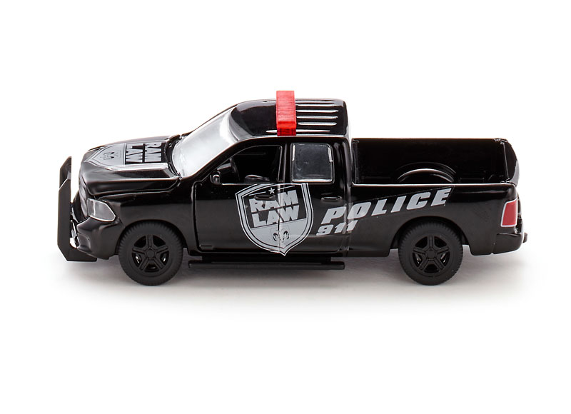 RAM ! Dans le monde entier, une référence pour les pick-up massifs et très puissants dotés d'un moteur 8 cylindres. À l'échelle 1:50, ce pick-up montre sa véritable taille et fonctionnalité. Le capot, les portes et la ridelle arrière sont ouvrants. La dernière innovation de SIKU concerne les roues. Elles sont pour la première fois amovibles, si bien qu'il est possible de reproduire une situation d'entretien ou de panne dans la chambre d'enfant. La version police arbore un gyrophare typique et un marquage qui ne passe pas inaperçu.