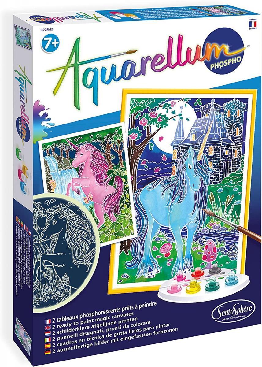 - Aquarellum PHOSPHO est un loisir créatif basé sur la technique d'un serti phosphorescent sur papier vélin, ce qui permet de réaliser un dessin d'un grand raffinement : le pinceau ne déborde pas, les motifs apparaissent comme par enchantement dès que l'on passe les encres, les couleurs vous surprendront par leur éclat, et les contours s'illumineront dans le noir !
