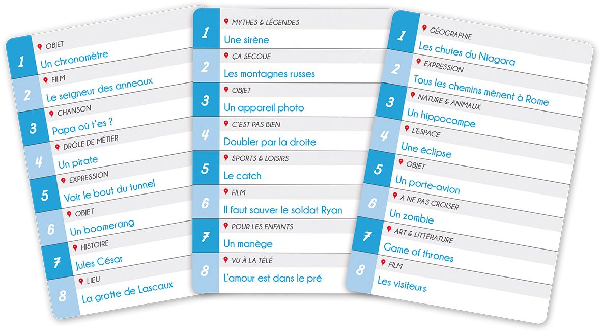 61 cartes transparentes au service de votre imagination pour faire deviner l'une des énigmes (films, lieux, personnages...).