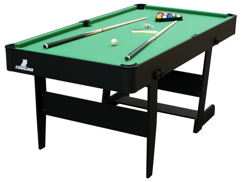 Ce billard est pliable pour un rangement optimal. Inclus: 16 boules de 44mm, un triangle en bois, une brosse, 2 queues de 122cm et de la craie. Aire de jeu 175 x 83 cm. Dimensions totales: 91 x 183 x hauteur 80 cm. Dimensions table pliée: 91x195x 45cm. Poids : 44 kg. Plateau en MDF 12mm, recouvert d'un tissu velours. Garantie: 2 ans.