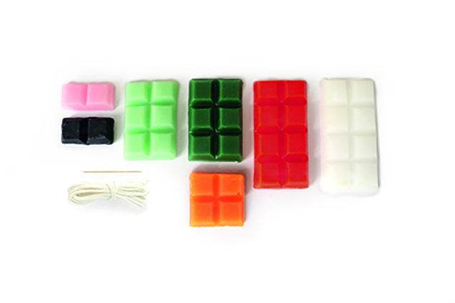 - 7 couleurs de bougie à modeler (Rose, Orange, Blanc, Vert foncé, Vert clair, Rouge, Noir)