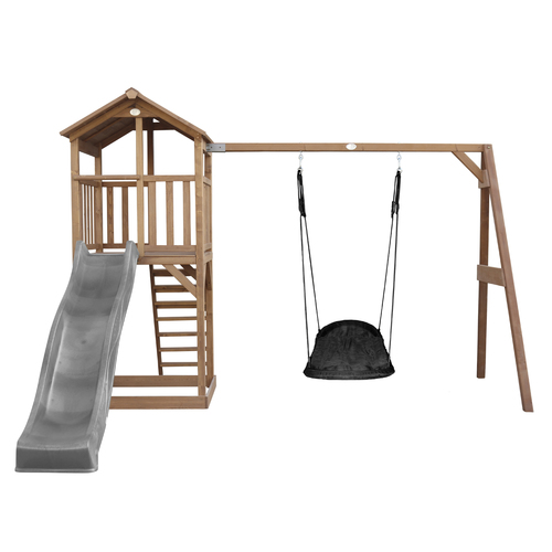 AXI Beach Tower avec Nid Roxy Balancoire Marron Toboggan Gris