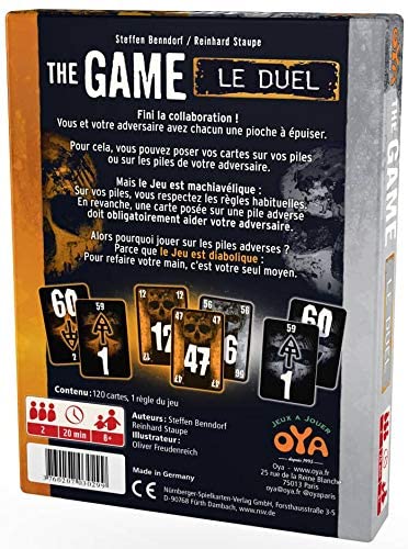 Fini la collaboration ! Chacun a une pioche à épuiser. Pour cela, vous pouvez poser vos cartes sur vos piles ou sur les piles de votre adversaire. Mais pour poser une carte sur une pile adverse, celle-ci doit obligatoirement l'aider. Alors pourquoi le faire ? Parce que c'est votre seul moyen de refaire votre main !