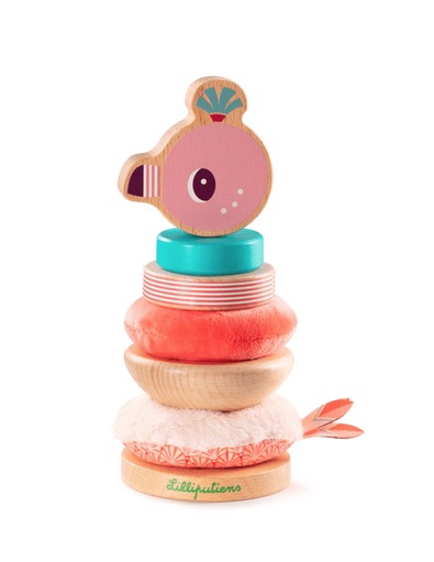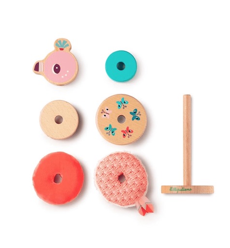 Jolie pyramide à empiler pour développer la motricité fine. Empilez les pièces de différents matériaux et de différentes couleurs de manière créative. La variété de formes, de couleur et de matériel stimulent les sens.