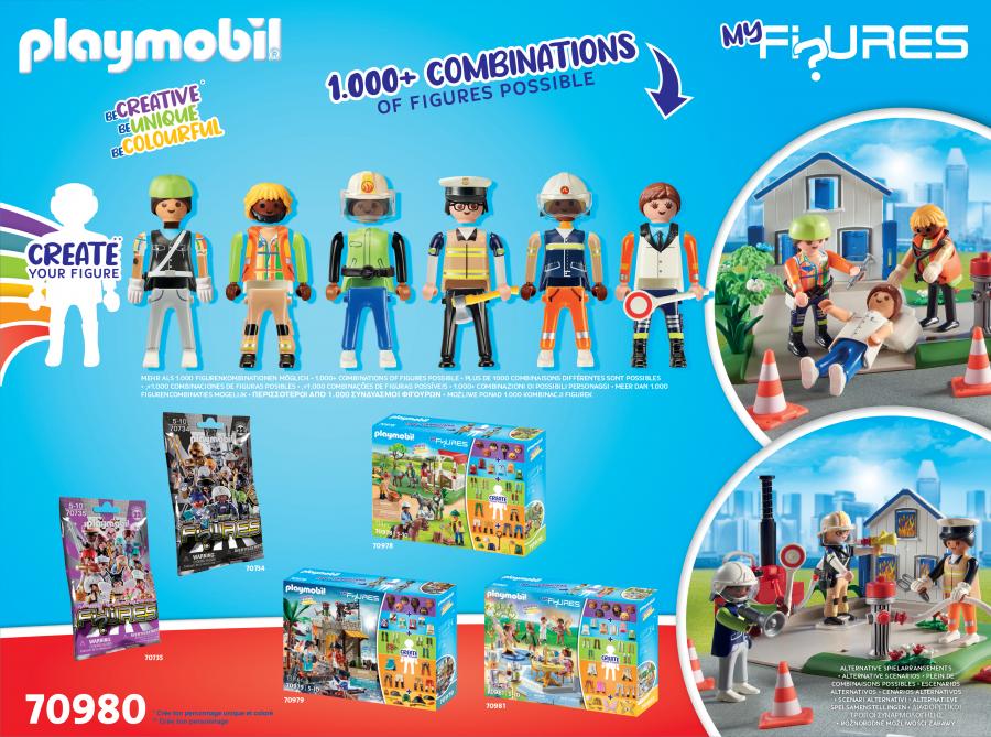 - Chaque personne est unique et différente. Avec les nouveaux PLAYMOBIL My Figures, les enfants peuvent imaginer des personnages à l'infini et créer un monde PLAYMOBIL qui leur ressemble: plus de 1000 combinaisons possibles ! Les sets My Figures permettent de libérer leur créativité et leur capacité à inventer de nouvelles histoires.