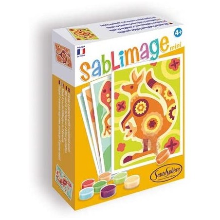 La gamme Sablimage Mini a été conçue pour un maximum de plaisir dans un petit coffret ! Profitez de la magie de Sablimage dans un petit format, plus facile à transporter ! Cette activité ludique et manuelle qui a été conçue pour que de très jeunes enfants puissent facilement, et en toute liberté, réaliser de jolis tableaux naïfs sans se salir. Chaque coffret contient :