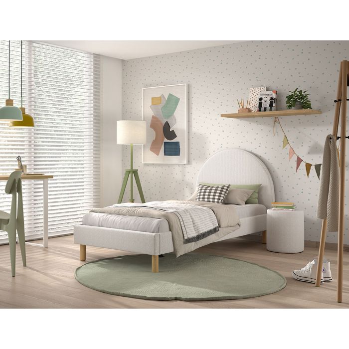 - MOON est compsé du lit MOON 90 x 200 cm en bouclé blanc avec pouf accompagnant. Sommier inclus