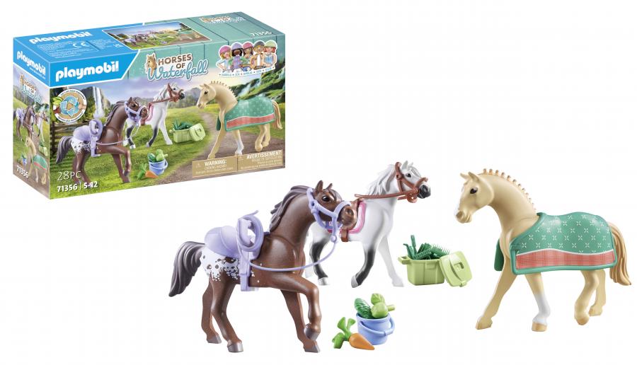 - Le coffret comprend trois chevaux, des selles, une couverture pour cheval, des licols et de nombreux accessoires.