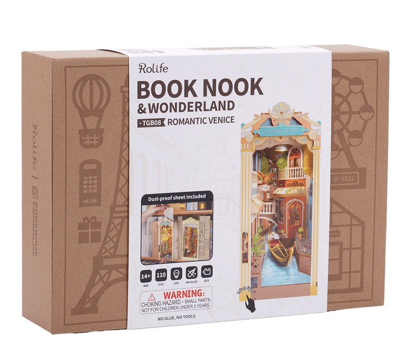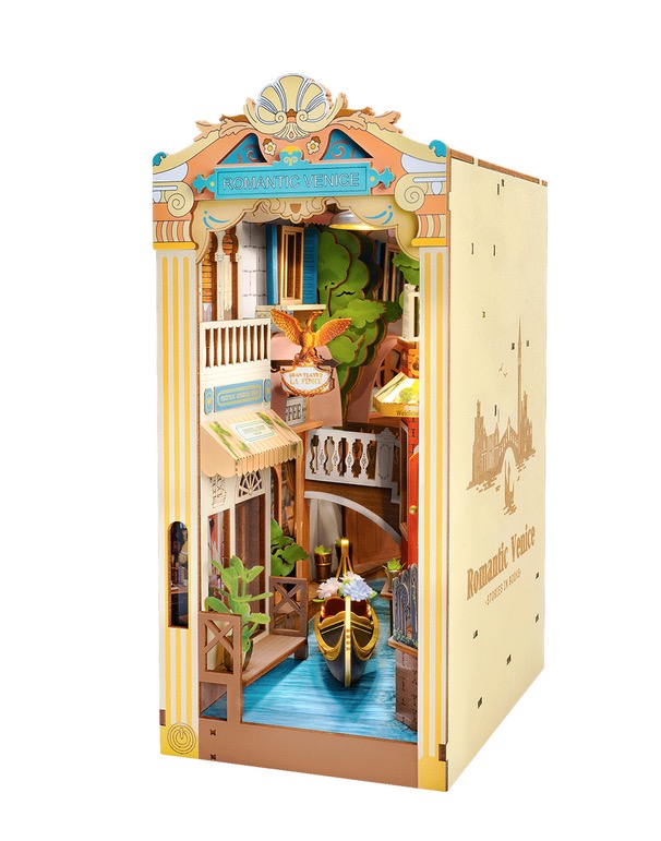 Glissez un morceau d'Italie entre vos livres avec Rolife Romantic Venice. Cette maquette a une vue magnifique sur le canal de Venise avec une promenade en bateau romantique et des monuments italiens.