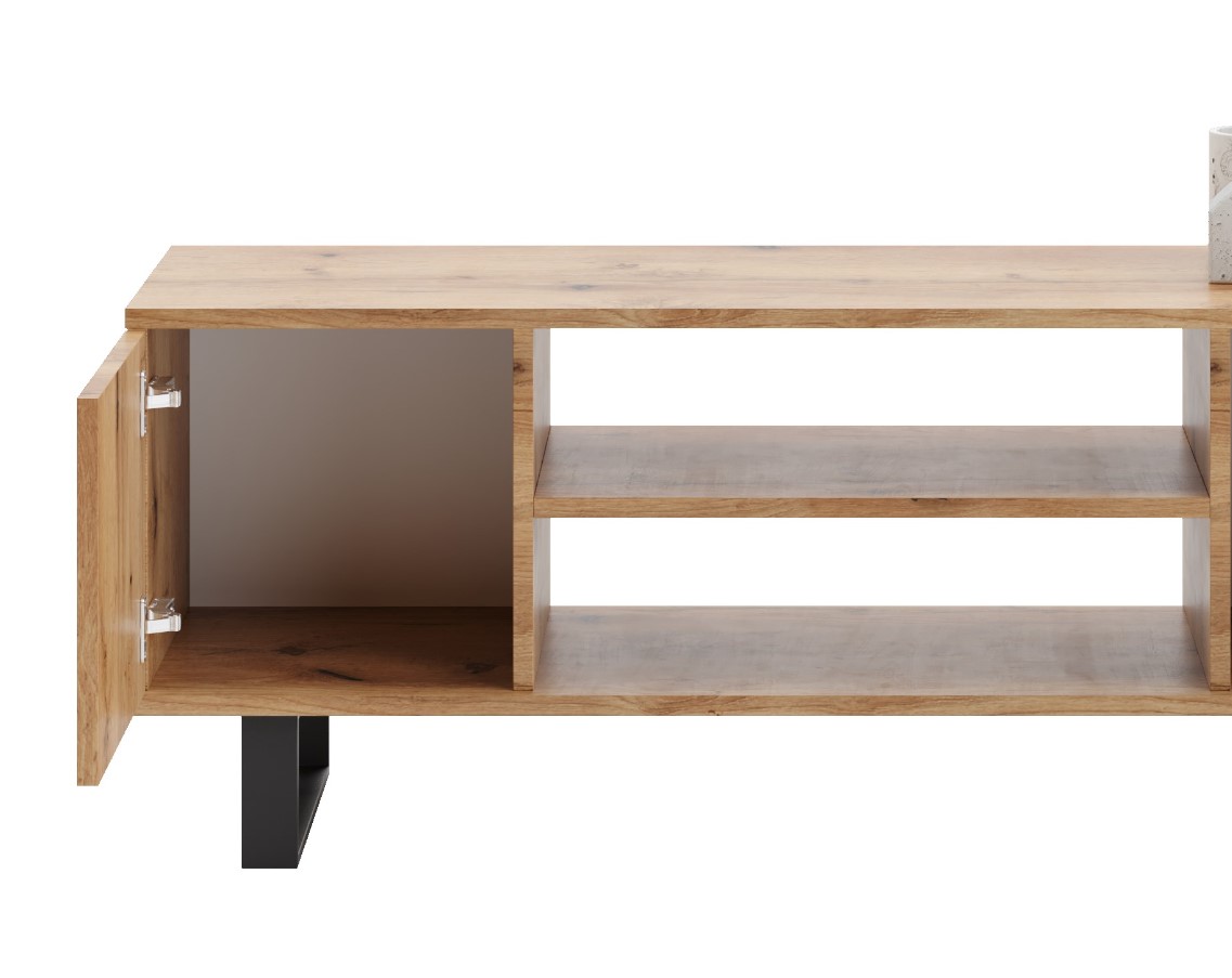 - Charnières de haute qualité avec fermeture silencieuse. Contient : FOCUS Meuble RTV 135 cm décor chevrons