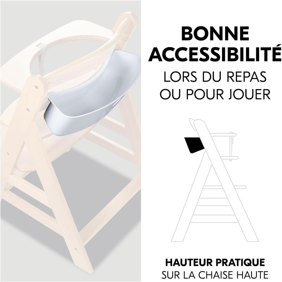 Highchair Box S - Boîte de rangement avec couvercle pour les chaises hautes en bois hauck Espace de rangement supplémentaire sur la chaise haute Cette boîte avec couvercle permet d'avoir plus de rangement sur votre chaise haute hauck Alpha+. Beta+. Arketa tout en étant facile d'accès. Grâce à sa fixation simple. le bavoir. les couverts ou les jeux sont à portée de main : plus besoin de se lever. La boîte peut contenir jusqu'à 3 kg. Avec sa hauteur pratique. votre bébé l'atteint aussi facilement et peut prendre son bavoir ou sa peinture. Fixation simple sur la chaise haute hauck La boîte de rangement se fixe très facilement et sans outil au bas du dossier de votre chaise haute évolutive hauck. Son ouverture pratique à l'avant vous permet de la porter facilement pour l'emmener dans le salon ou la chambre et continuer de bricoler. Compatible avec d'autres accessoires de chaise haute Grâce à sa forme associée aux chaises hautes hauck. vous pouvez l'utiliser en combinaison avec d'autres accessoires comme par exemple le transat pour nouveau-né. le siège réducteur. le coussin d'assise ou également avec le plateau repas ou le plateau de jeu. Surface lisse facile à nettoyer La surface lisse de la boîte de rangement est facile à entretenir et à nettoyer.
