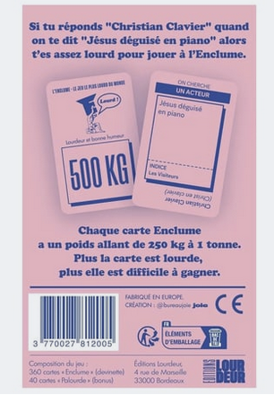 Le jeu de société que tous tes potes les plus lourds attendaient sans le savoir. Il est à la lourdeur ce que le Pictionnary est au dessin, ce que le Trivial Pursuit est à la culture générale. Au coeur de L'Enclume : le jeu de mots, le calembour, l'association d'idées absurdes, l'humour décalé, le sixième degré...