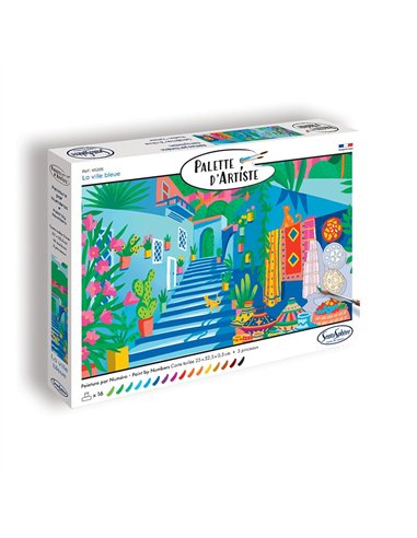 Laissez-vous envoûter par la beauté unique de La Ville Bleue avec la Palette d'Artiste – La Ville Bleue (Peinture par Numéro) ! Ce kit vous permet de peindre les rues pittoresques et les bâtiments aux teintes bleues emblématiques d'une ville marocaine, connue pour ses nuances captivantes et son atmosphère magique, guidé par un système simple et intuitif de numérotation. Le carton toilé de haute qualité (250 x 325 x 1,8 mm) garantit un rendu net et détaillé pour une œuvre pleine de sérénité et de charme. Parfait pour les débutants comme pour les artistes confirmés, ce coffret vous offre une expérience créative relaxante et inspirante. Un moyen idéal d'ajouter une touche de mystère et de couleur à votre intérieur !