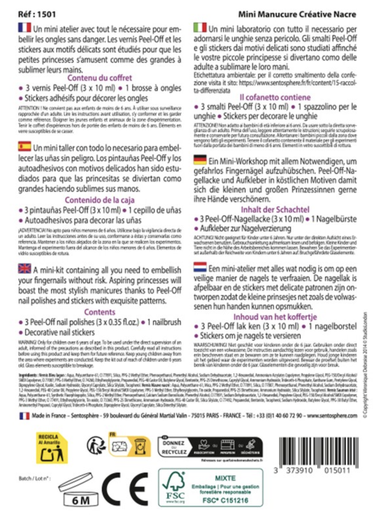 - Ce coffret a été testé selon les normes cumulées du Jouet et de la Cosmétique. Il contient des ingrédients et des formules qui ne présentent aucun danger pour la peau des enfants.