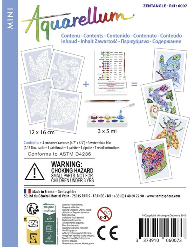 - Des mini illustrations serties qui apparaissent comme par enchantement à chaque coup de pinceau. En effet, elles ne laissent la peinture adhérer que sur des surfaces réservées, et leur format est parfaitement adapté pour les artistes débutant à partir de 5 ans.