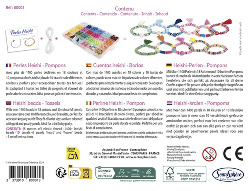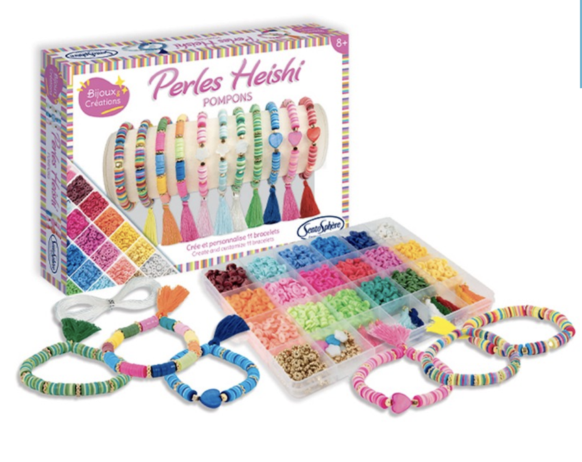 - KIT COMPLET POUR UNE CRÉATION FACILE : Le coffret contient toutes les pièces nécessaires pour réaliser de bracelets : perles Heishi, pompons et fils, ainsi qu'une notice détaillée pour guider les enfants dans leur réalisation.