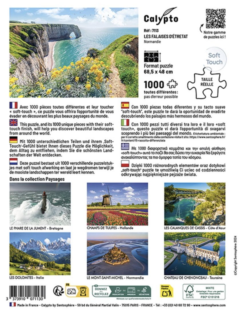 Puzzle 1000 pieces - Les falaises d etretat Normandie - Calypto - Sentosphere