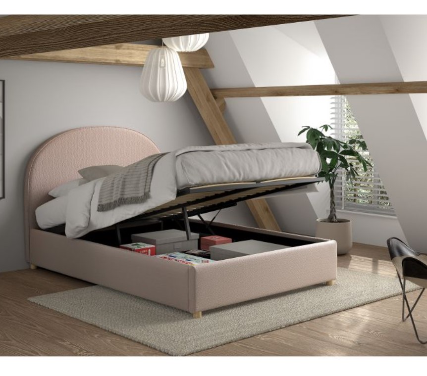 Ce lit rembourré de la collection MOON dispose d'un revêtement bouclé unique en rose. La combinaison de ce revêtement en tissu et de la tête de lit arrondie confère au lit une apparence chaleureuse et un caractère accueillant. Un avantage supplémentaire de ce lit est l'espace de rangement sous le lit. Le sommier à lattes et le matelas peuvent être facilement soulevés à l'aide d'un ruban.? Le pouf rose est un véritable élément phare. Le tissu bouclé unique crée une ambiance chaleureuse, ce qui rend ce pouf parfait pour tout salon, chambre ou coin lecture. Cet article peut être utilisé comme siège supplémentaire, repose-pieds ou comme table de nuit tendance à côté du lit où vous pouvez garder votre livre ou votre téléphone à portée de main. Ce n'est pas seulement un meuble pratique, mais aussi un objet décoratif qui enrichit l'espace.