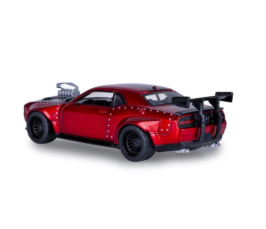 Le Dodge Challenger SRT Jailbreak est une édition spéciale de la légendaire voiture de sport américaine, symbolisant une personnalisation maximale et une performance brute. Équipé d'un moteur HEMI V8 de plus de 800 chevaux, le Jailbreak offre une expérience de conduite incomparable et un pur plaisir de conduite à l'américaine – un véritable monstre sur la route. JAMARA vous propose ce véhicule unique dans votre vitrine de collection, au format métal DIECAST à l'échelle 1:36 – avec de nombreux détails fins qui raviront tous les passionnés. Ce modèle officiellement licencié se distingue par un intérieur fidèle à l'original et le design distinctif du Challenger SRT Jailbreak. La cabine peut accueillir une figurine de jeu, tandis que les pneus en caoutchouc profilés et le pare-brise transparent complètent l'apparence authentique. Avec le kit de tuning personnalisé à plusieurs pièces, vous pouvez personnaliser le modèle selon vos préférences. Les portes et le capot peuvent être ouverts manuellement, offrant une vue sur l'impressionnant intérieur – un véritable point fort pour tous les collectionneurs. Le Dodge Challenger SRT Jailbreak de JAMARA n'est pas seulement un véritable atout pour votre vitrine, mais aussi un must pour tout collectionneur et passionné de voitures de muscle américaines.