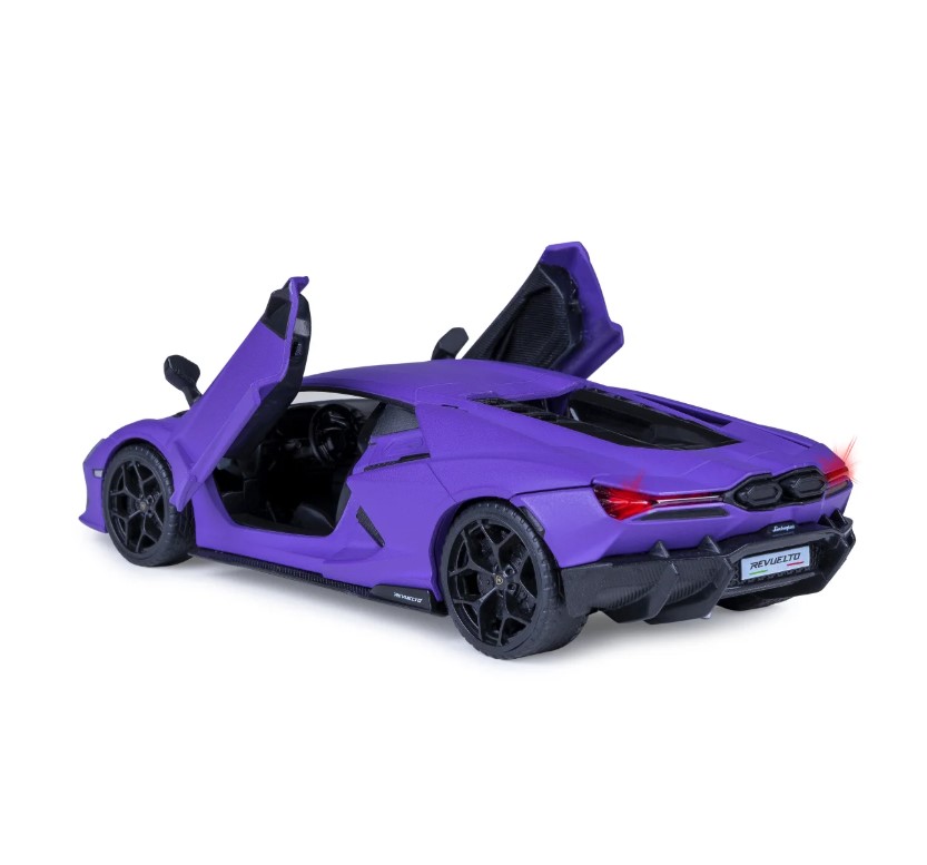 Le Lamborghini Revuelto est la première supercar de série de Lamborghini équipée d'un moteur hybride V12, marquant le début d'une nouvelle ère dans l'histoire de la marque. Avec plus de 1000 chevaux, il allie une technologie électrique de pointe à la puissance classique de Lamborghini et une performance extrême. JAMARA propose ce véhicule unique en modèle DIECAST métallique de haute qualité à l'échelle 1:32 – avec de nombreux petits détails qui raviront chaque fan. Le Lamborghini Revuelto séduit par son intérieur fidèle au modèle original et un design élégant qui n'a rien à envier au véritable véhicule. Avec une cabine pour figurines, des effets sonores réalistes et un bruit de moteur authentique, ce modèle offre une expérience de conduite impressionnante. Les pneus en caoutchouc profilés et le pare-brise transparent confèrent au modèle un look particulièrement réaliste. De plus, les feux LED avant et arrière, ainsi que les portes et le capot qui s'ouvrent manuellement, ajoutent encore du plaisir de jeu. Le puissant moteur à retour et le bruit qui se déclenche en appuyant sur la carrosserie font de ce modèle un incontournable pour toute collection. Le Lamborghini Revuelto de JAMARA n'est pas seulement un véritable objet de collection pour votre vitrine, mais également un must pour tous les collectionneurs et passionnés de supercars italiennes.